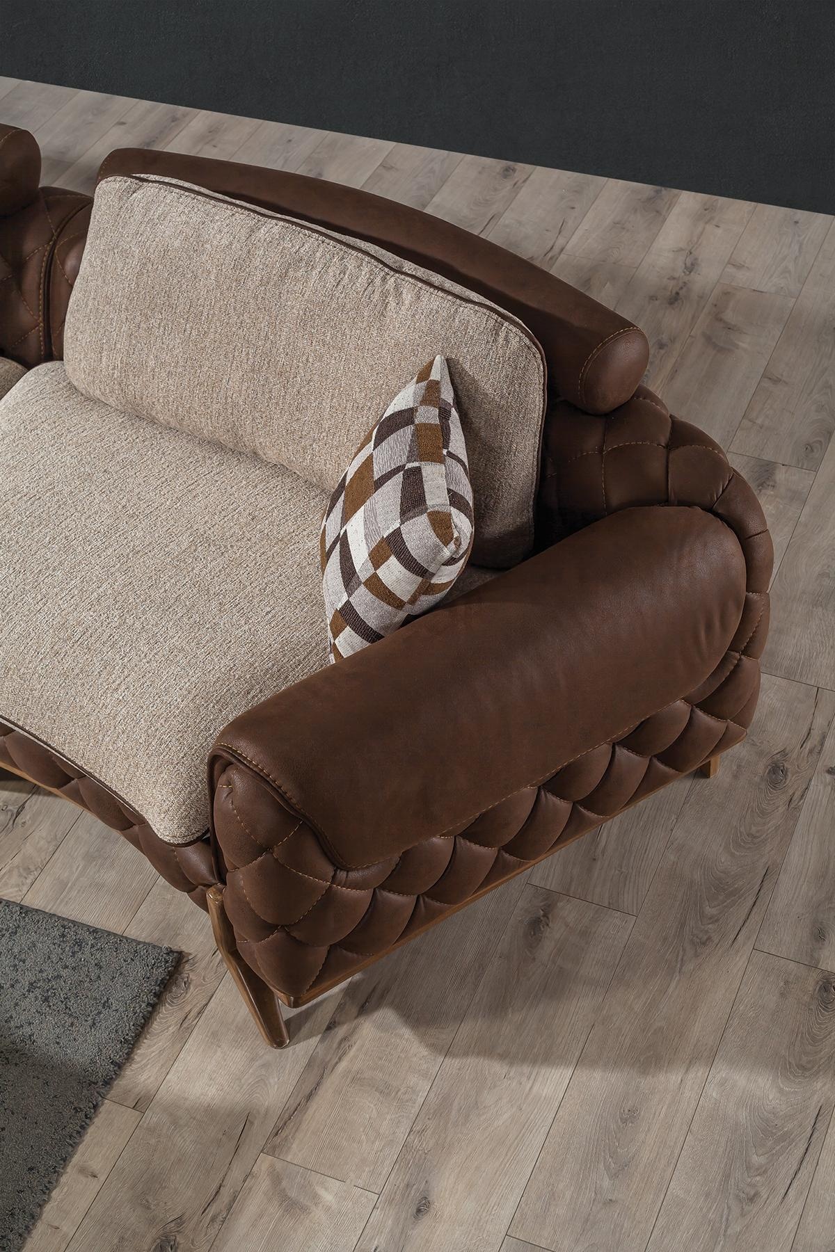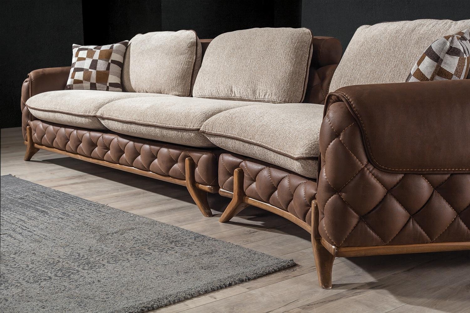 Eleganten premium kavč za 4 osebe je zasnovan za tiste, ki cenijo prefinjenost in udobje. Njegova rjava tkanina v kombinaciji s sintetičnim usnjem ustvarja harmonično celoto, ki se brezhibno prilega vsakemu ambientu. S široko izbiro premium oblikovanja, ki jo nudi naša znamka, boste vašemu domu dodali pridih ekskluzivnosti. Kavč ne le da ponuja prostor za druženje, temveč postane osrednji del vašega dnevnega prostora, ki odraža vaš sofisticiran življenjski slog. Njegova vrhunska zasnova in kakovostna izdelava zagotavljata dolgotrajen užitek in brezskrbnost. Izberite eleganco, ki govori sama zase.
