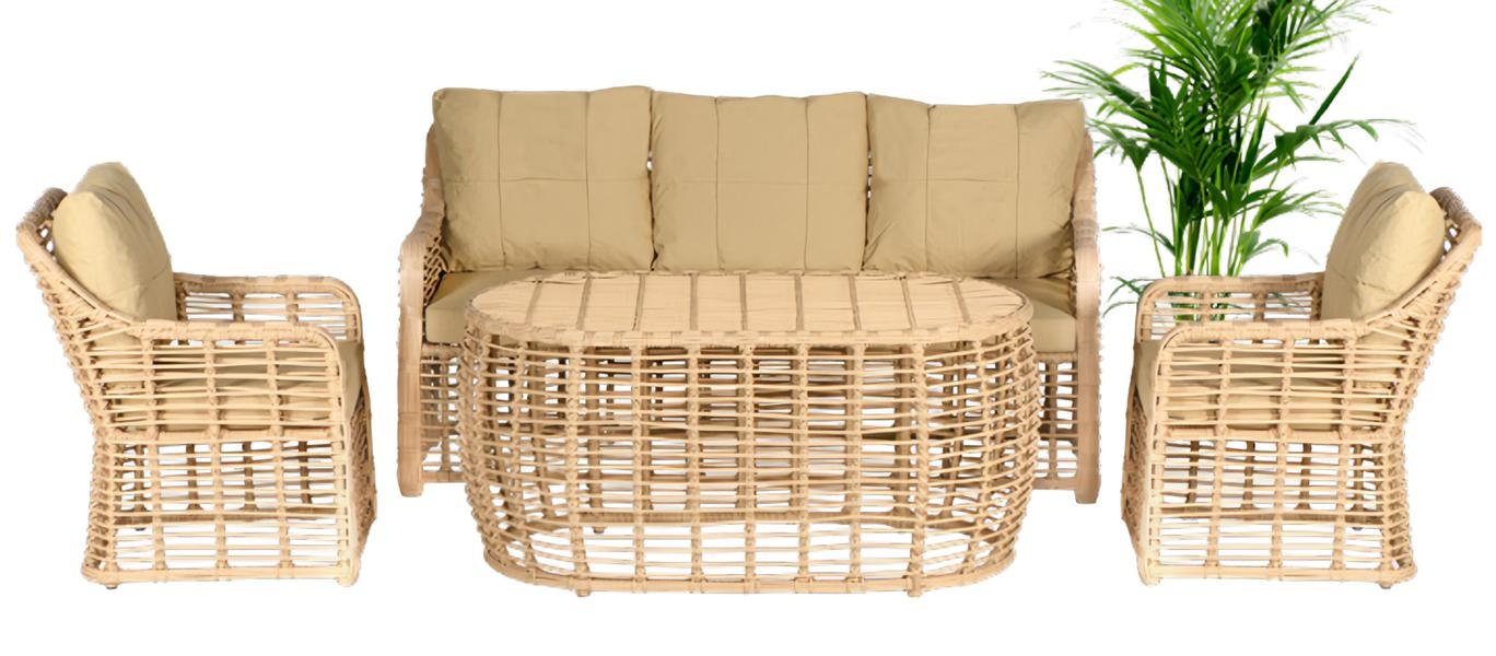 Vrtna pohištvena garnitura je sinonim za eleganco in udobje, ki preobraža vsak zunanji prostor v oazo prefinjenosti. Njen brezčasen bež ton se brez težav sklada z naravno okolico, medtem ko vrhunski materiali zagotavljajo dolgotrajno kakovost. Kavč in fotelj iz moderne zasnove nudita izjemno udobje, idealno za sproščanje ob druženju ali uživanje v miru. Miza z minimalističnimi linijami dopolnjuje celotno garnituro in ponuja prostor za vsakodnevne užitke. Ta garnitura ni le pohištvo; je izraz življenjskega sloga, ki ceni luksuz in estetiko. Izberite jo za svoj dom in izkusite vrhunec sodobne zunanje elegancije.